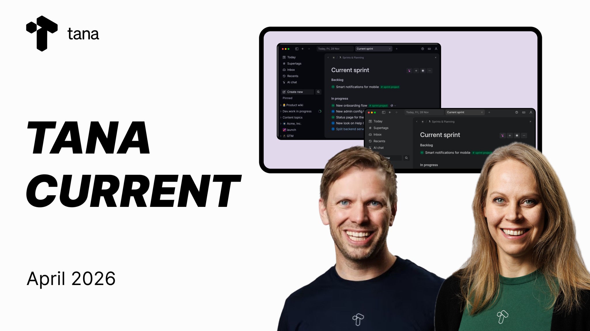 ArticleTana Current April 2026The Outliner team is focused on improving the day-to-day experience. The community continues to push the boundaries of what's possible with the Tana MCP. And Theo gave a first live walkthrough of the new Tana, showing meetings where AI captures and creates work during the conversation itself.
